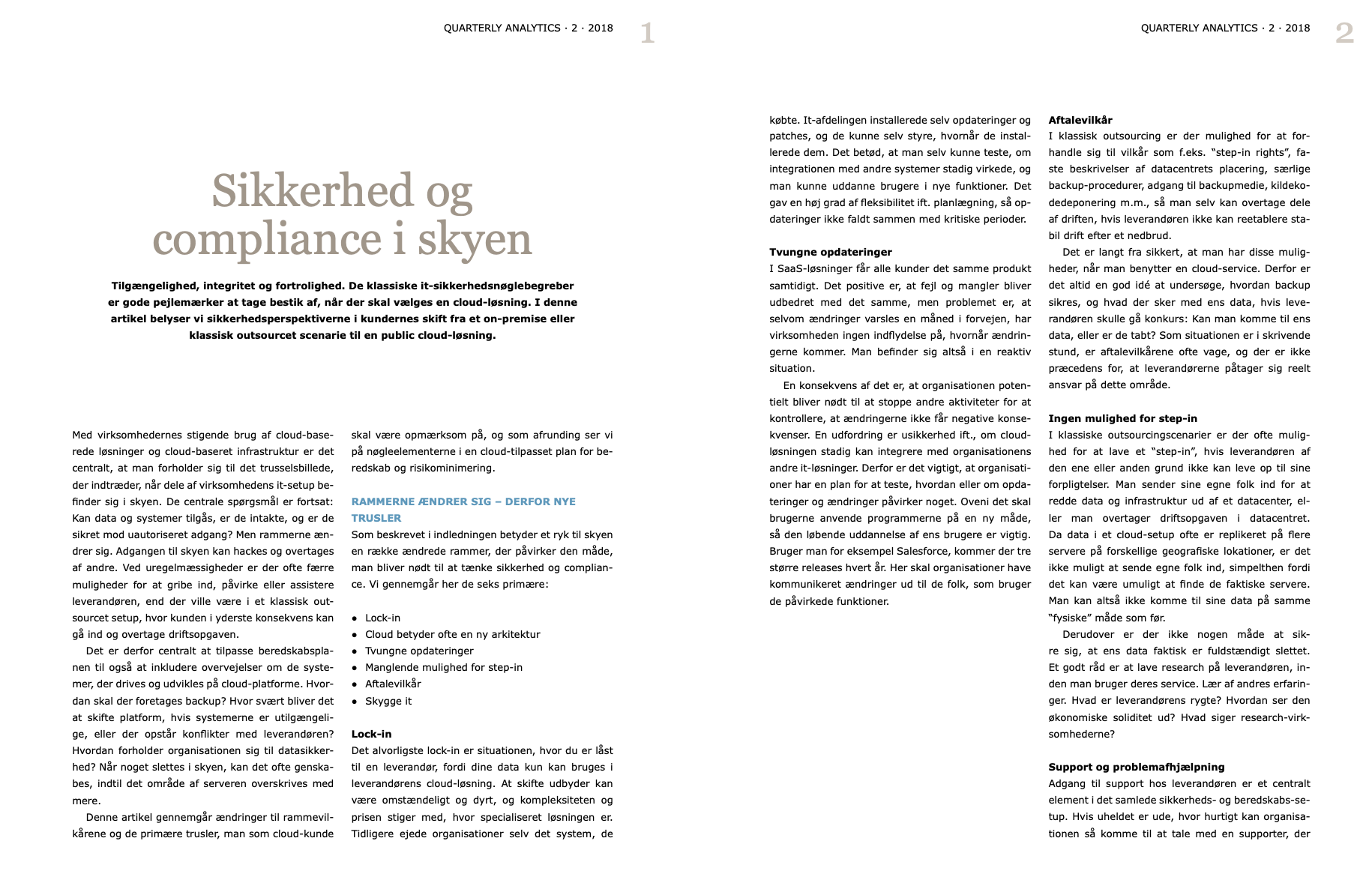 I denne artikel belyser vi sikkerhedsperspektiverne i kundernes skift fra et on-premise eller klassisk outsourcet scenarie til en public cloud-løsning.