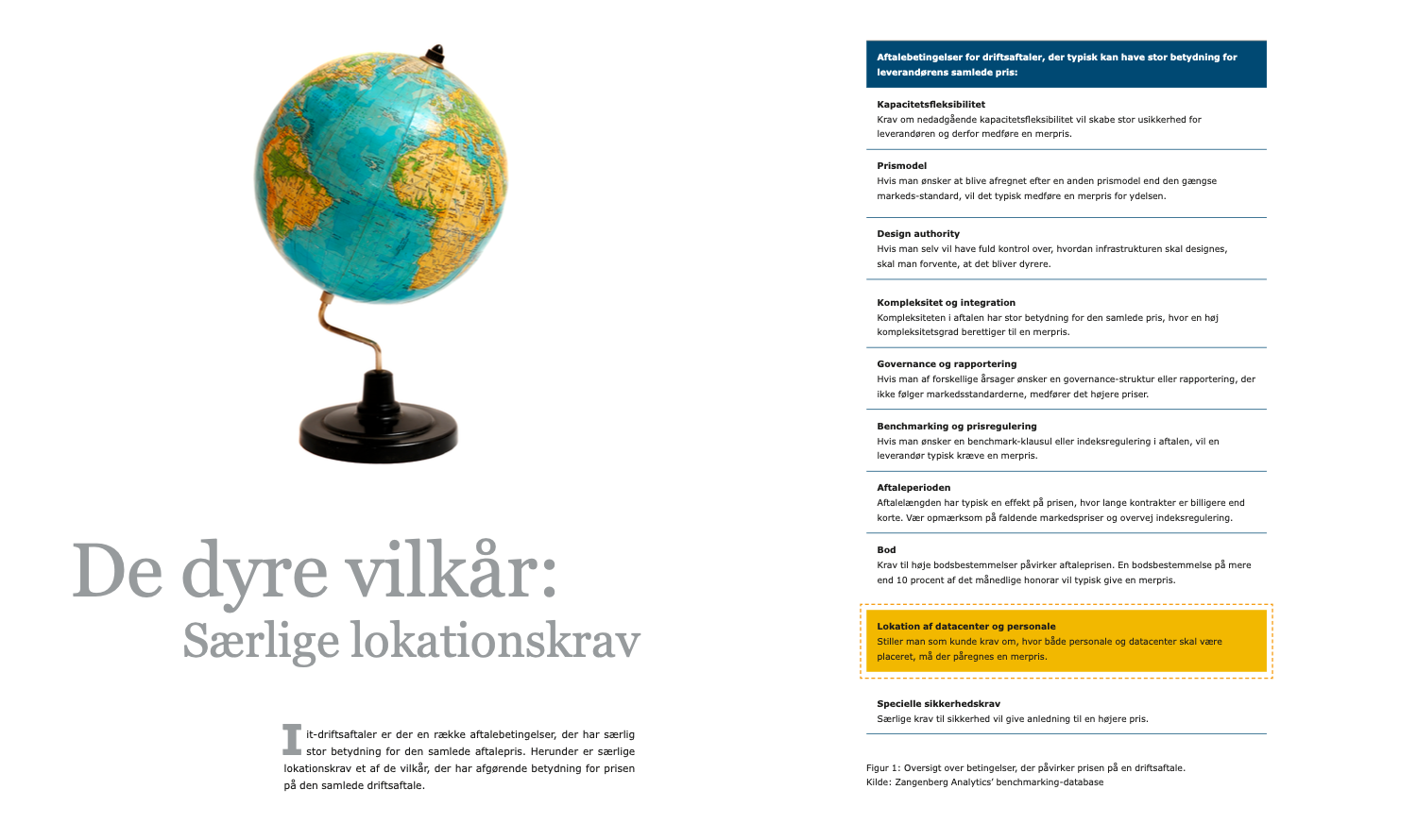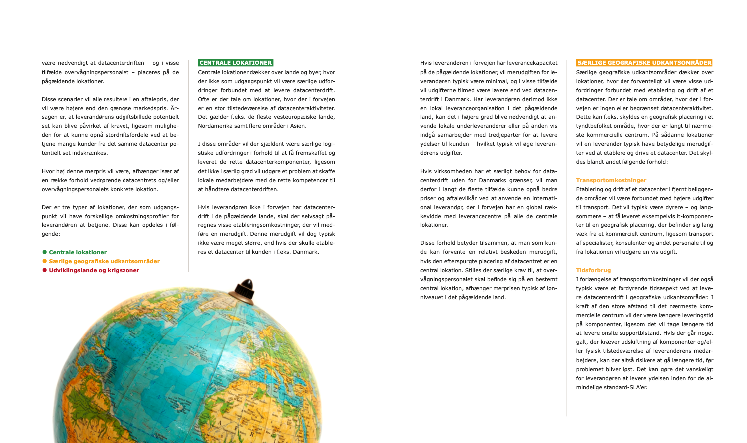Hvis man som kunde ønsker at få indskrevet i aftalen, at datacentret f.eks. SKAL ligge i Danmark, vil den samlede aftalepris således være højere, end hvis det IKKE fremgår specifikt af aftalen, hvor datacentret skal ligge.