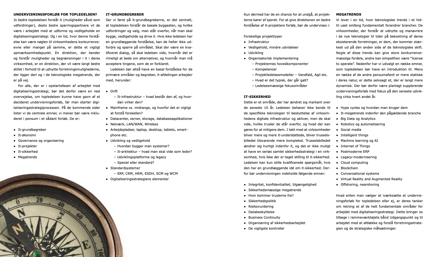 Jo bedre topledelsen forstår it (muligheder såvel som udfordringer), desto bedre sparringspartnere vil de være i arbejdet med at udforme og vedligeholde en digitaliseringsstrategi.