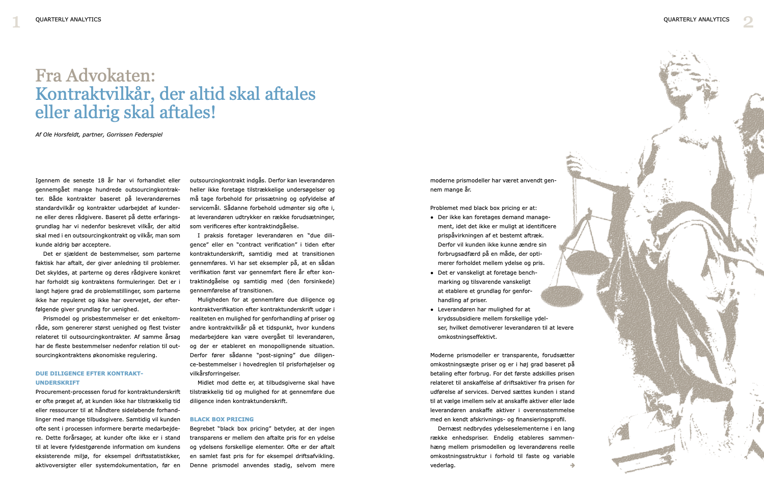 Prismodel og prisbestemmelser er det enkeltområde, som genererer størst uenighed og flest tvister relateret til outsourcingkontrakter.