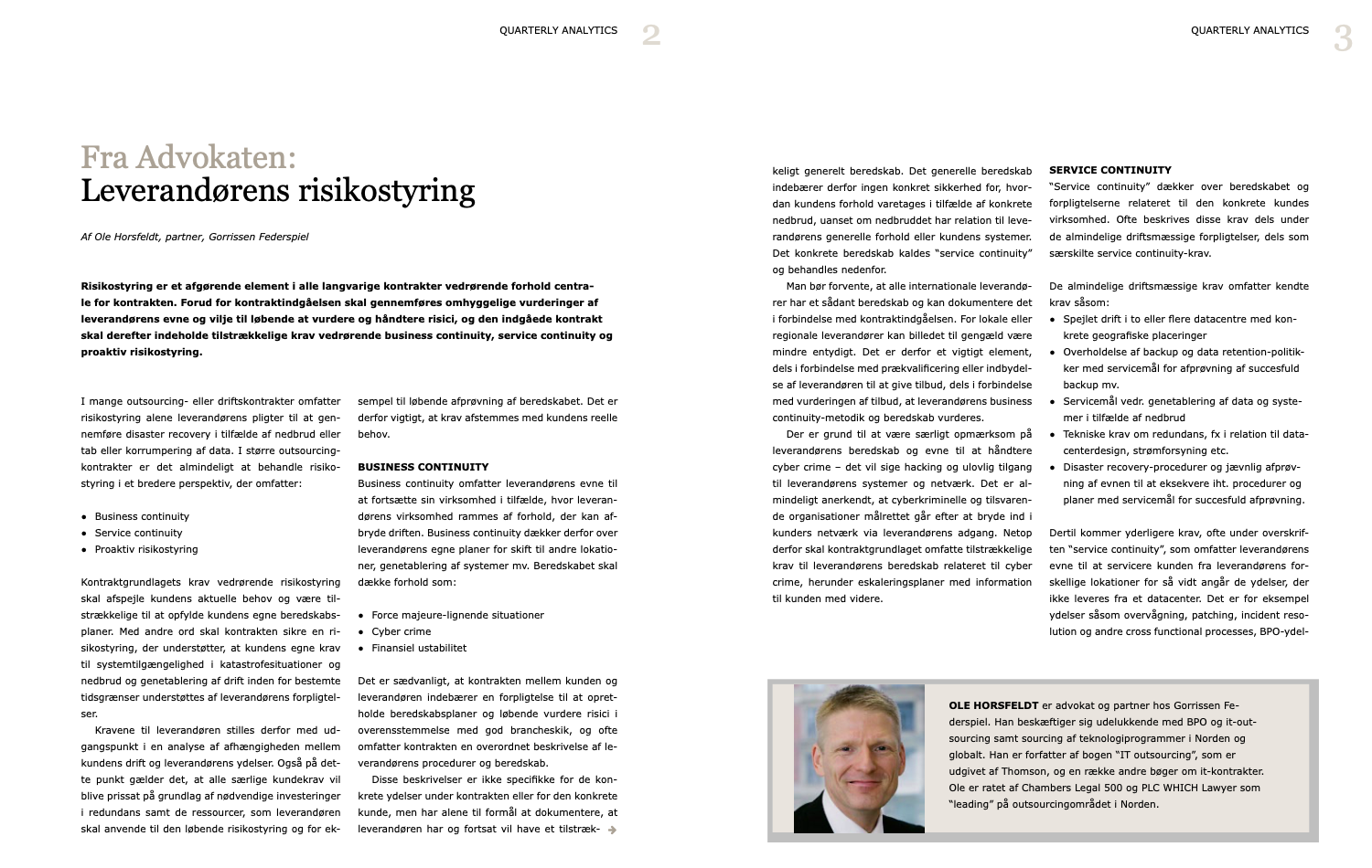 I denne artikel ser advokat Ole Horsfeldt nærmere på, hvilke krav man kan og bør stille til leverandørens risikostyring i forbindelse med outsourcingaftaler.