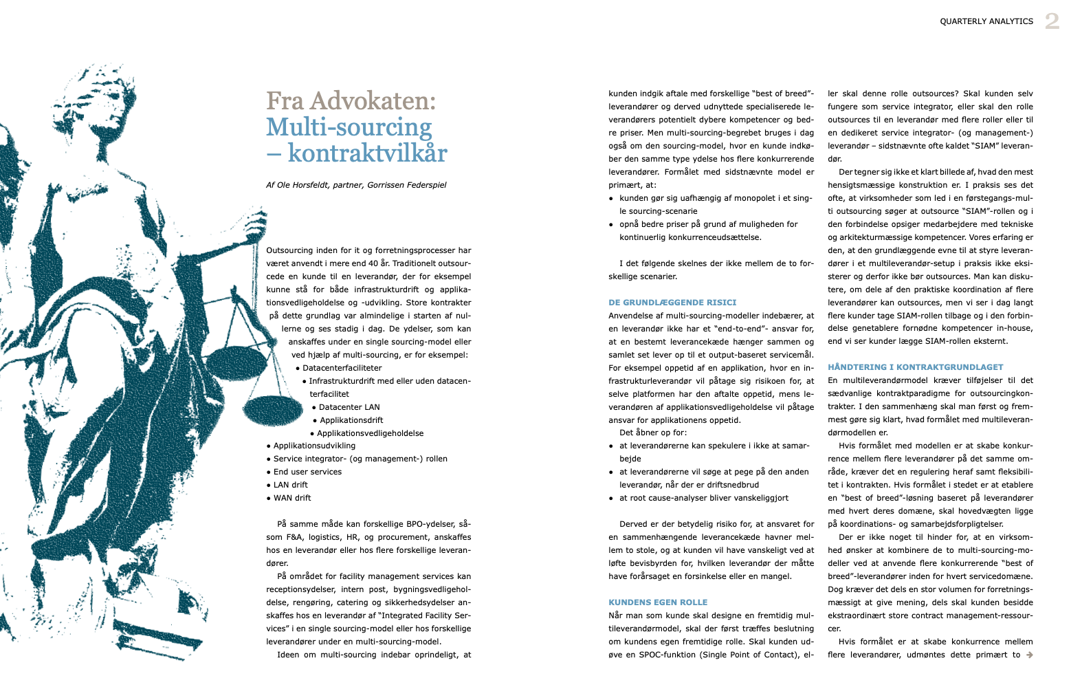 I denne artikel ser advokat Ole Horsfeldt nærmere på kontraktvilkår ved multisourcing-aftaler.