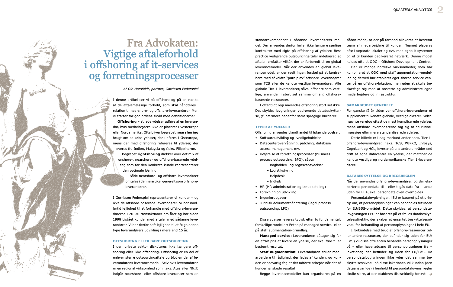 I denne artikel gennemgås en række af de aftalemæssige forhold, som dog fortsat skal håndteres i relation til nearshore- og offshore-leverancer.