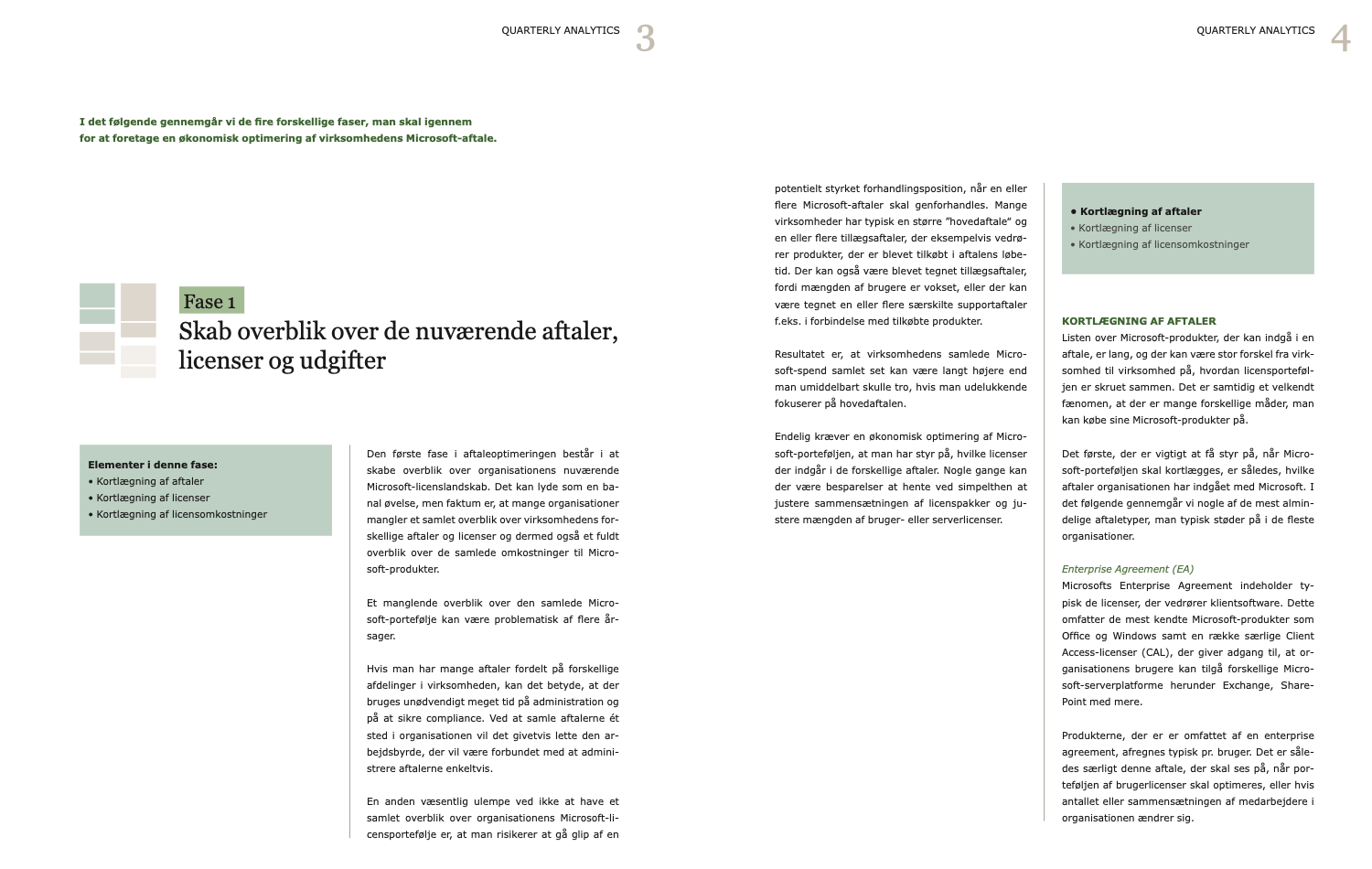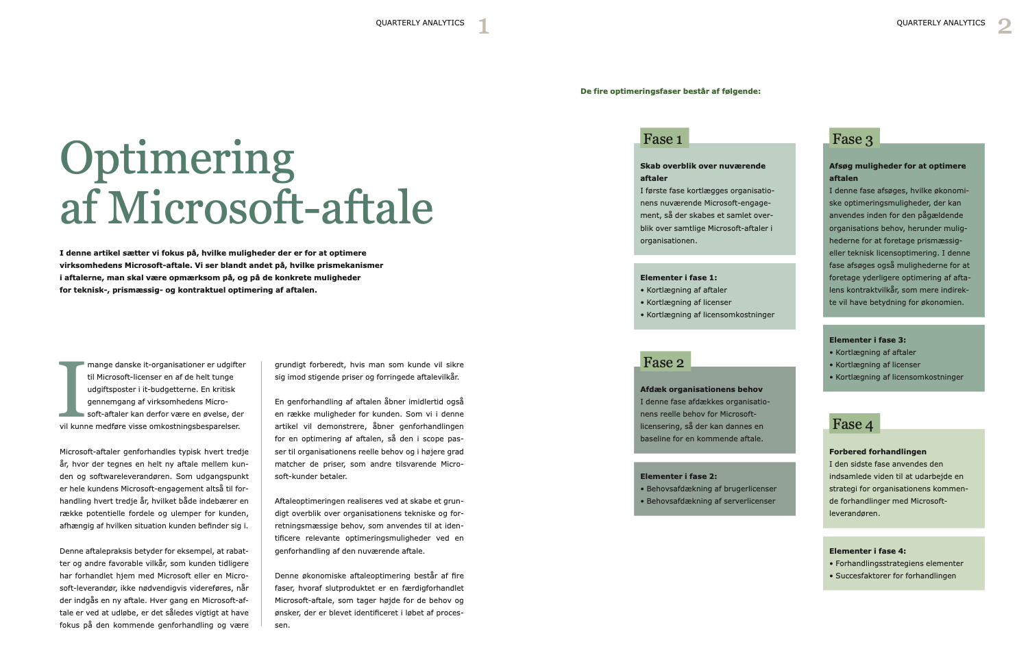 Denne økonomiske aftaleoptimering består af fire faser, hvoraf slutproduktet er en færdigforhandlet Microsoft-aftale, som tager højde for de behov og ønsker, der er blevet identificeret i løbet af processen.