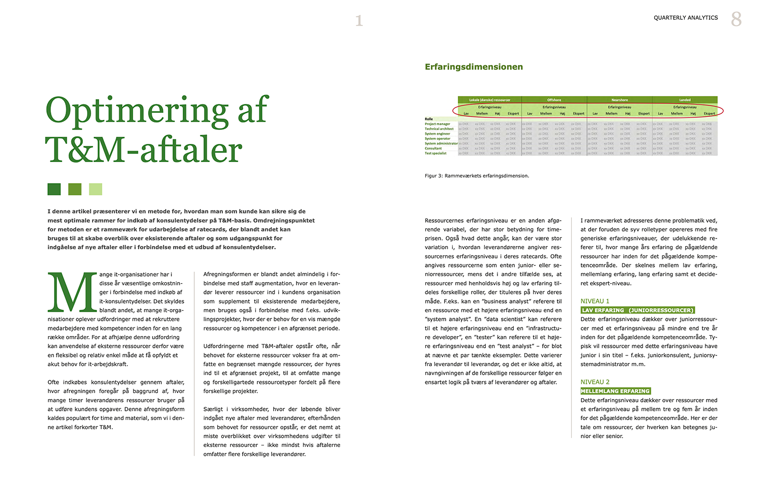 I denne artikel sætter vi fokus på, hvilke forhold der har betydning for økonomien, når der indgås aftaler om konsulentydelser på T&M-basis, samt hvordan man som kunde kan styre sine indkøb ved hjælp af en standardramme for fastsættelse af timepriser for de indkøbte ydelser. Den gennemgår metode for kortlægning og harmonisering af ratecards, sammensætning af ressourcer og centrale aftale vilkår.