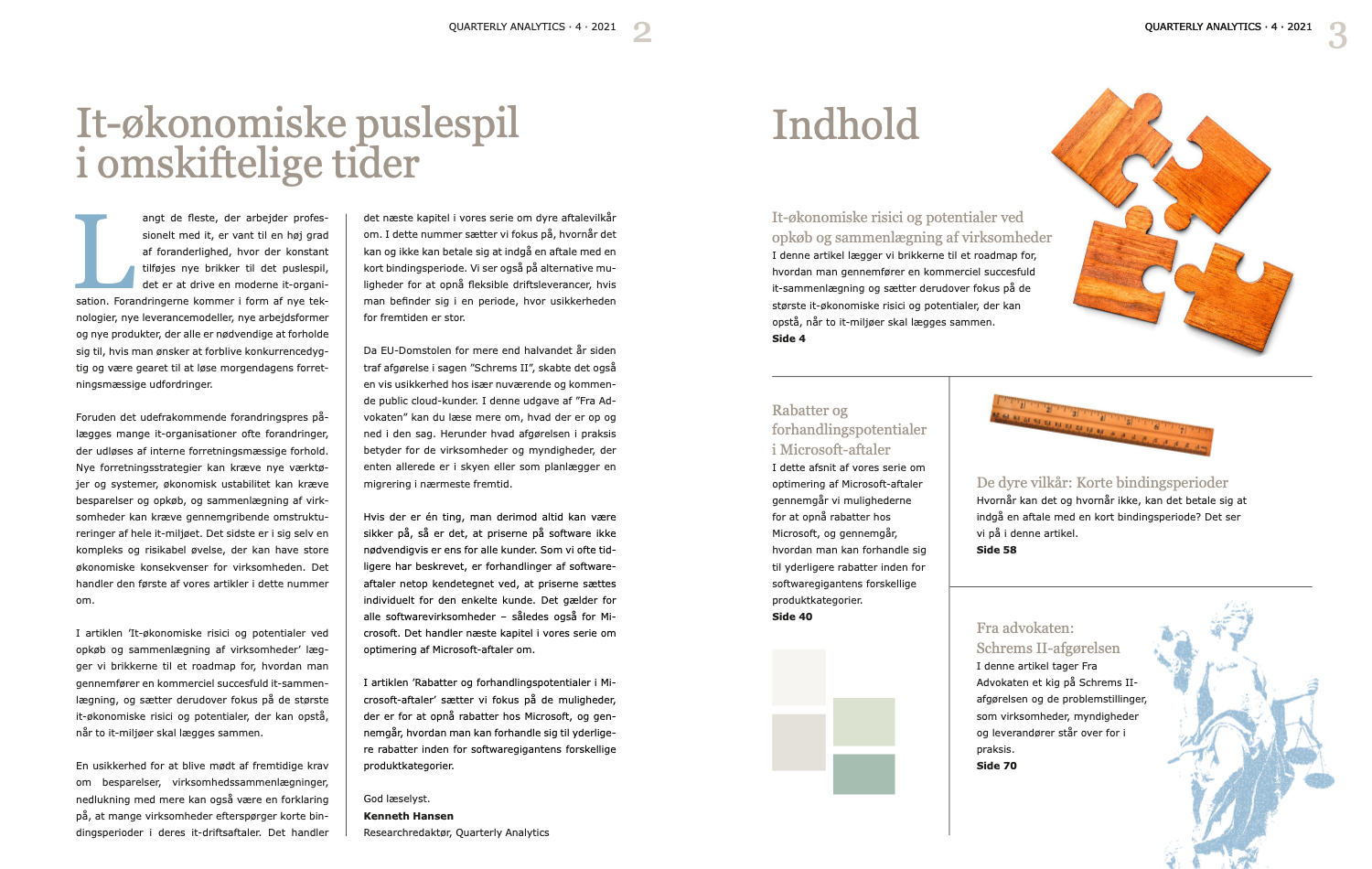 It-økonomiske risici og potentialer ved opkøb og sammenlægning af virksomheder | Rabatter og forhandlingspotentialer i Microsoft-aftaler | De dyre vilkår: Korte bindingsperioder | Fra Advokaten: Schrems II-afgørelsen
