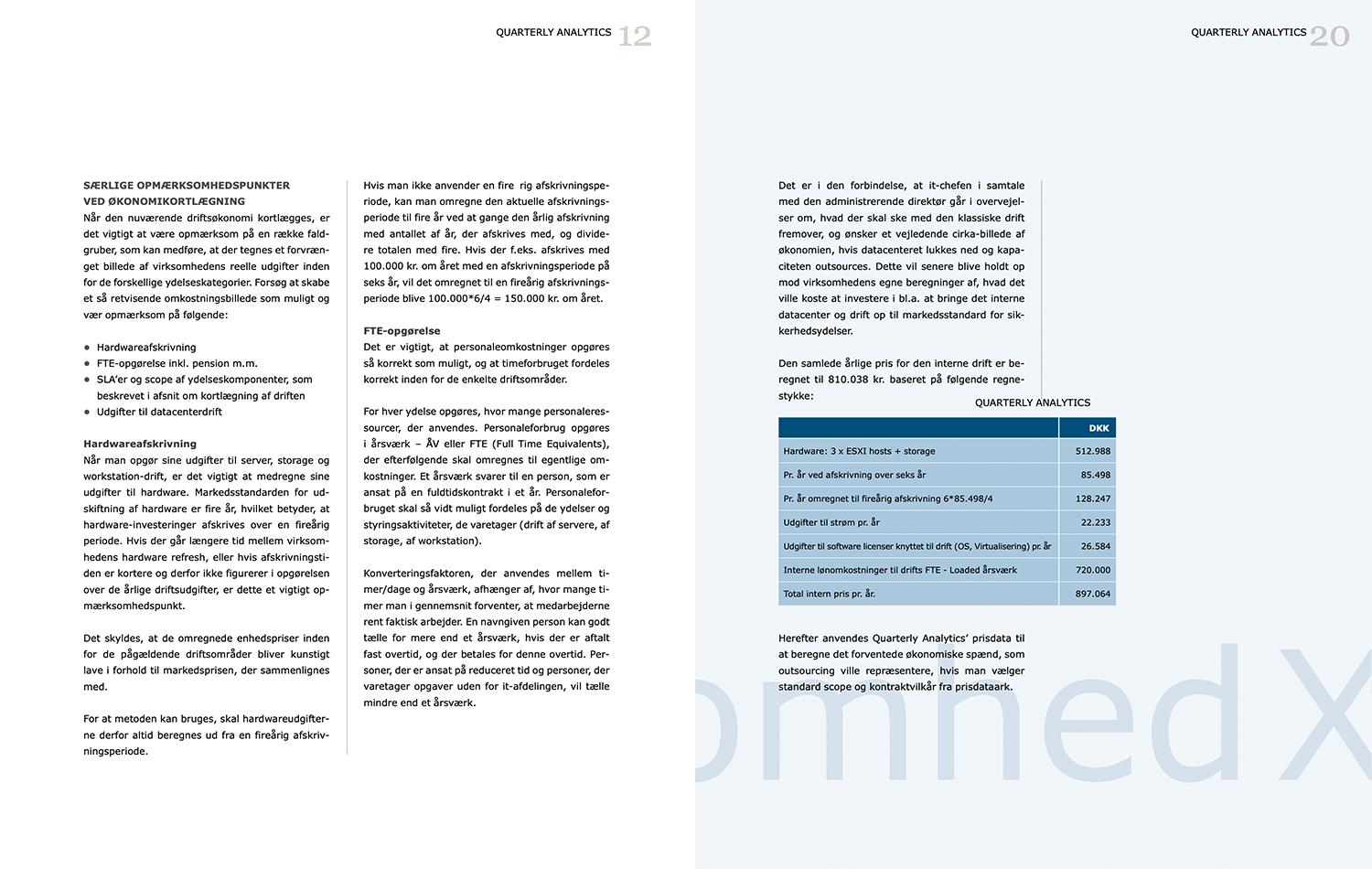 Artiklen har fokus på intern basisdrift og traditionel outsourcing som et alternativ. Den gennemgår kortlægning af nuværende drift, kortlægning af nuværende omkostninger til drift samt opbygning samt brug af Quarterly Analytics prisdata til en indikativ analyse. Artiklen henvender sig primært til it-chefer og it-operations ansvarlige som forberedelse til sourcingstrategisk dialog med ledelsen.