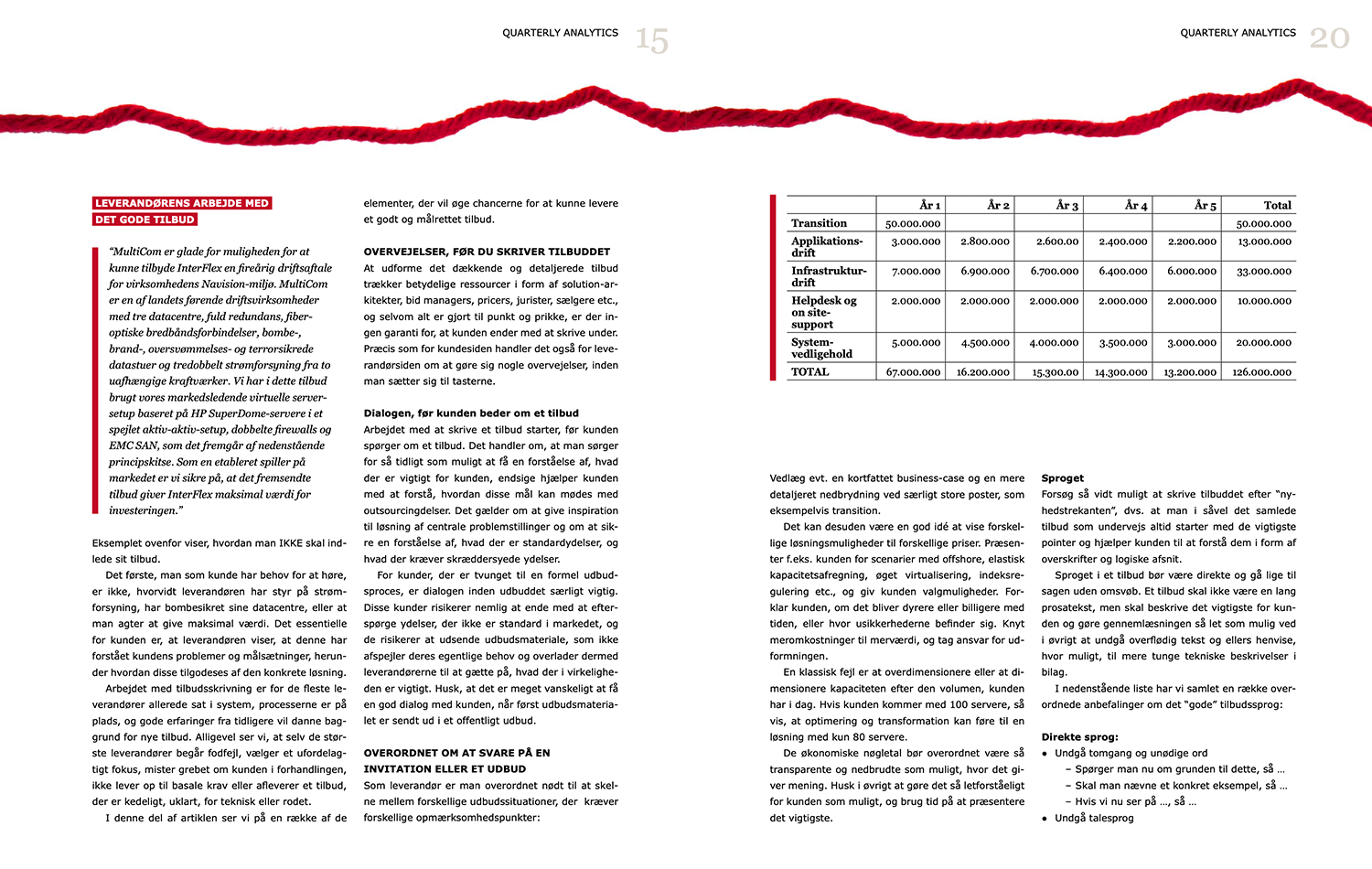 Herefter skifter artiklen fokus og ser på de overvejelser, leverandøren bør prioritere, inden man går i markedet, og på hvordan man skriver det gode tilbud til en kunde.