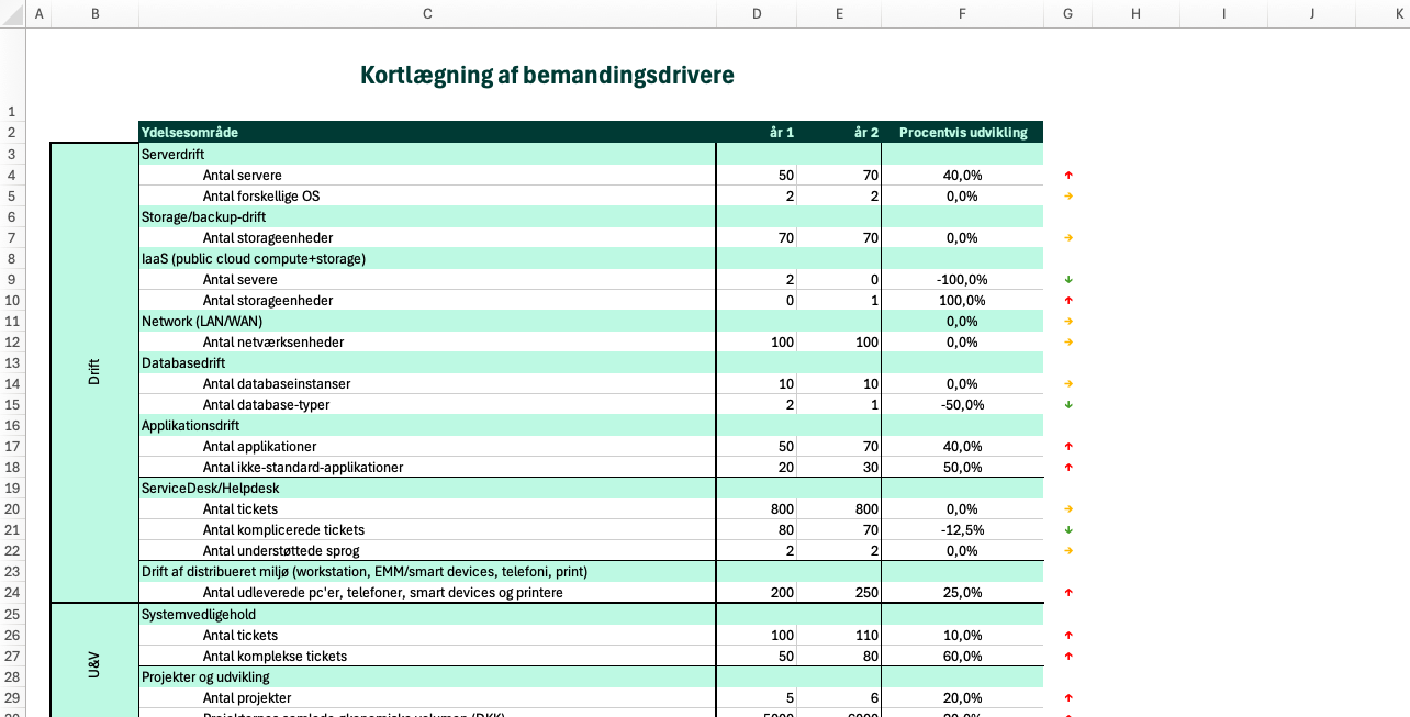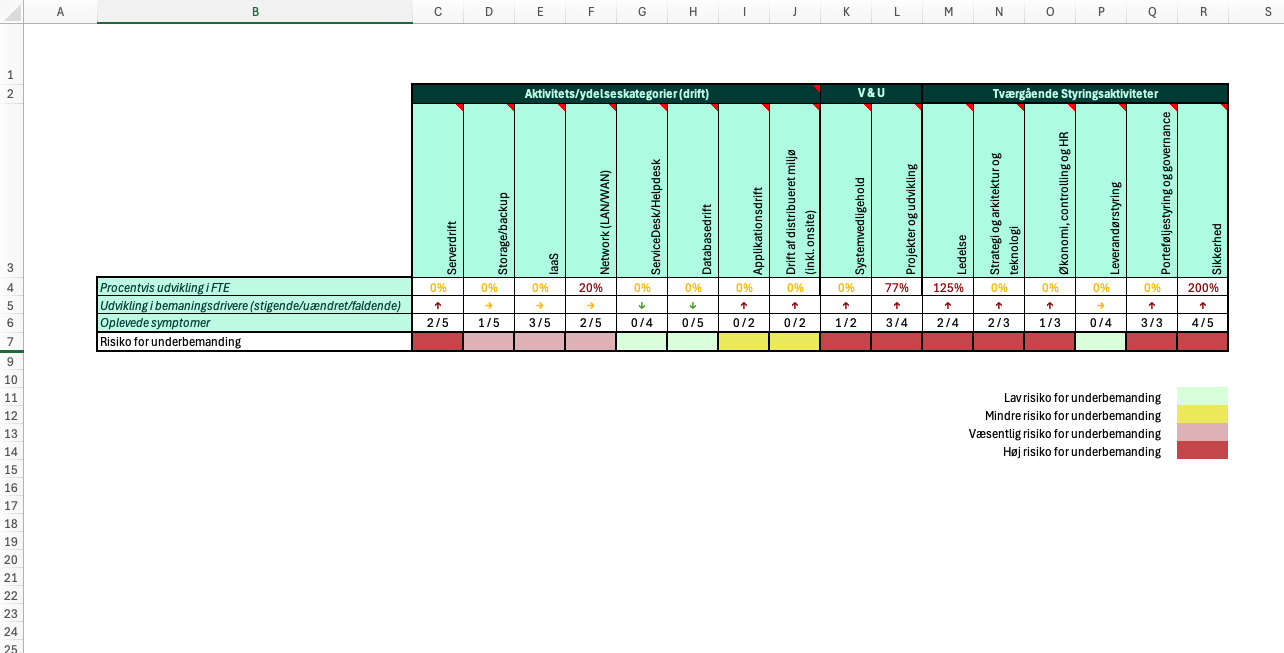 Dette værktøj er et Excel-ark, der kan bruges til vurdering af bemandingsbehovet i en it-afdeling.