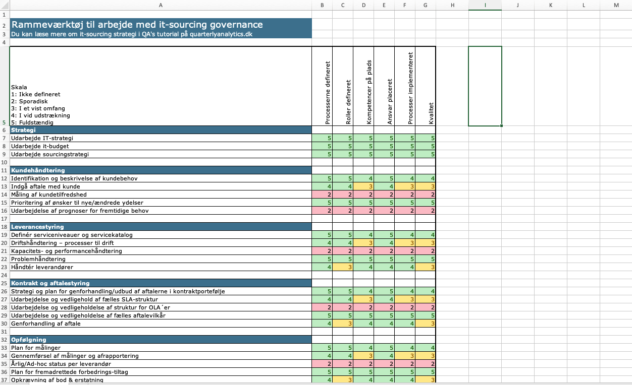 Værktøjet hjælper med at skabe overblik over governance-indsatsen i forbindelse med dit it-sourcingstrategiske arbejde.