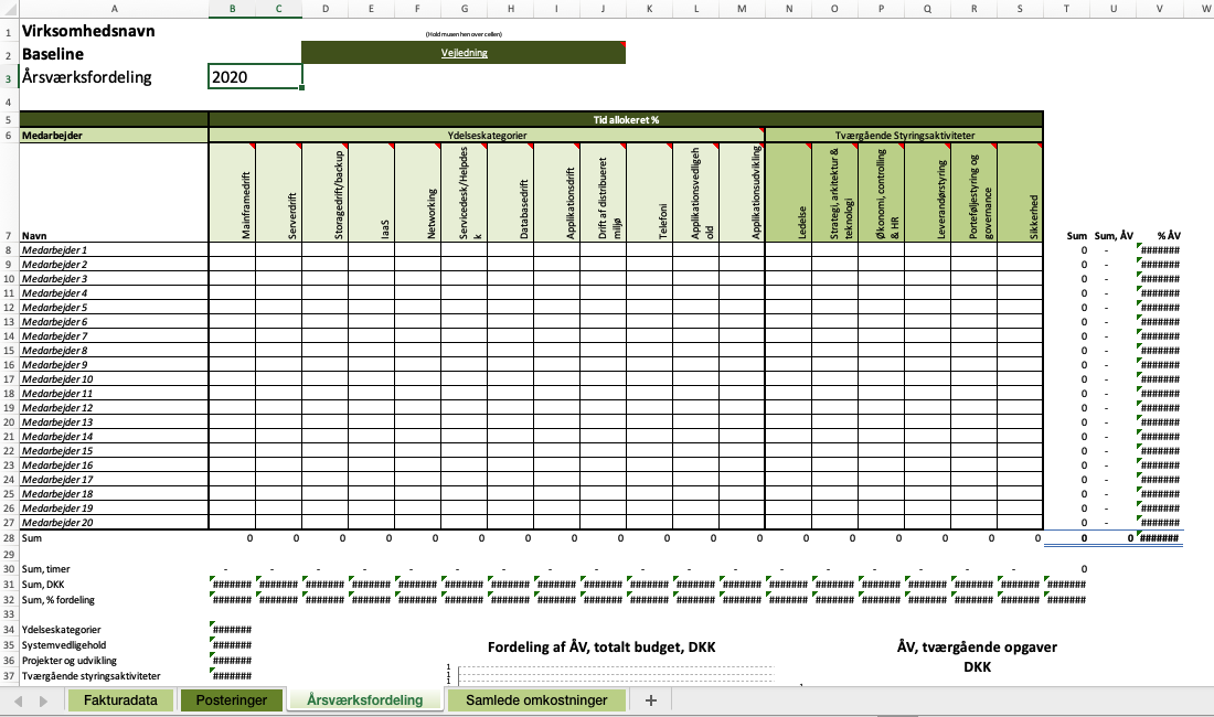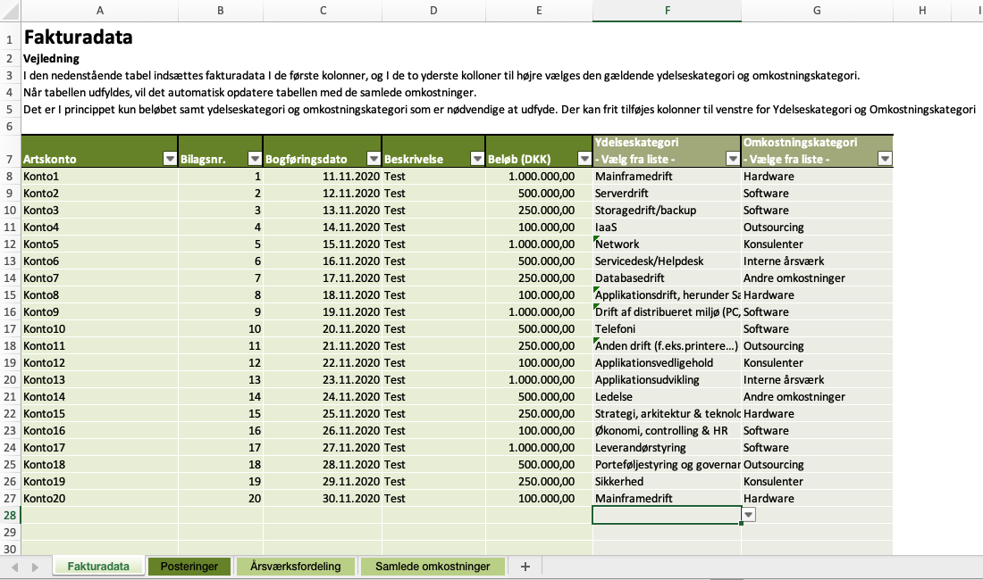 Dette værktøj er et Excel-skema der kan lette arbejdet med at sortere virksomhedens historiske it-udgifter i forbindelse med etablering af en it-kontoplan.
